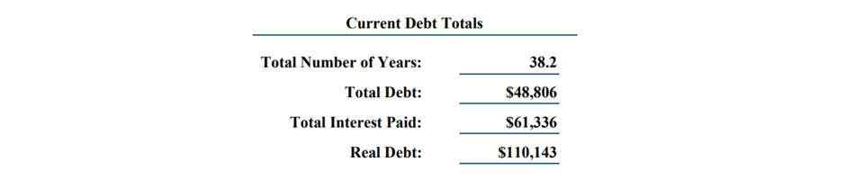 Ryan is a 34-year-old non-traditional student who returned to college to obtain a master’s degree.  Simply, in his chosen career field, the benefit of earning a master’s degree meant higher pay and career growth opportunity.  He did everything right.  Now, with approximately $50K in student loans, we estimate he’ll have to pay over $110K in interest, taking him over 35 years to pay off his student loans.